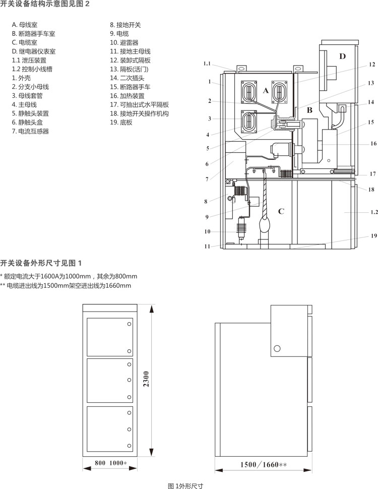 案,經排列、組合后能成為各種方案形式的配電裝置。本開關設備可以從正面進行安裝調試和維護,因此它可以背靠背組成雙重排列和靠墻安裝,提高開關設備的安全性、靈活性,減少了占地面積。