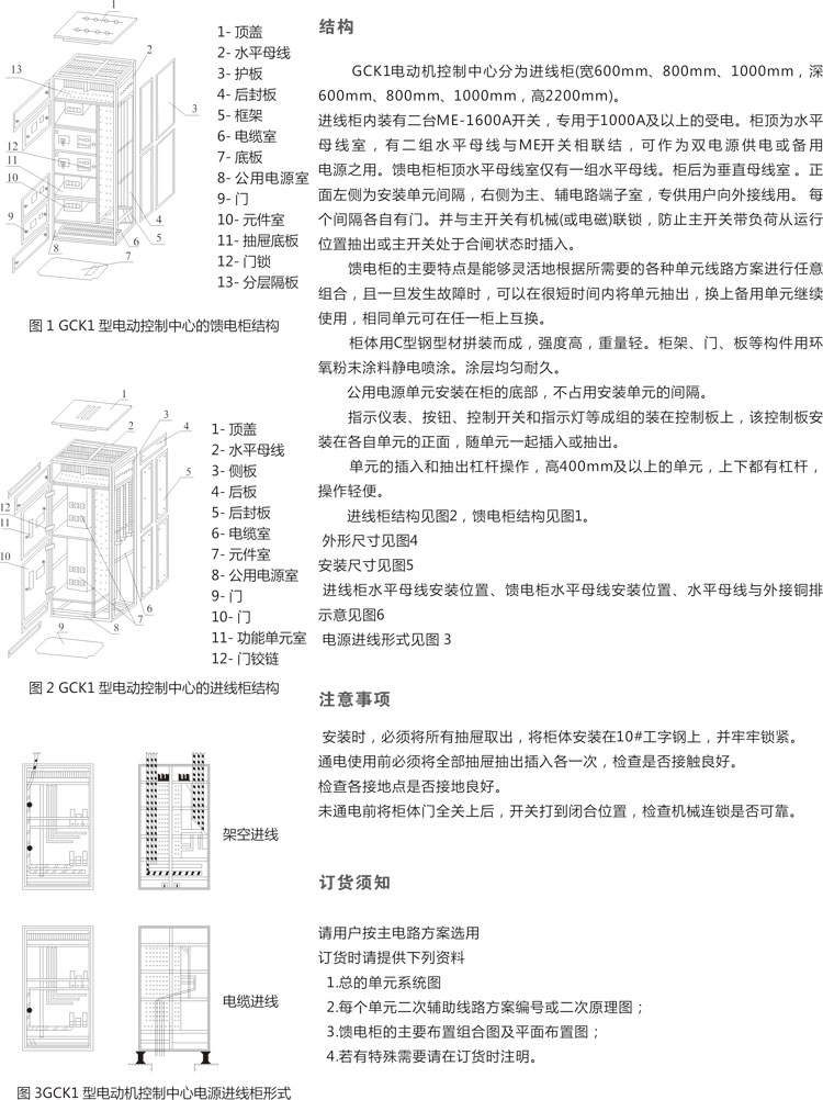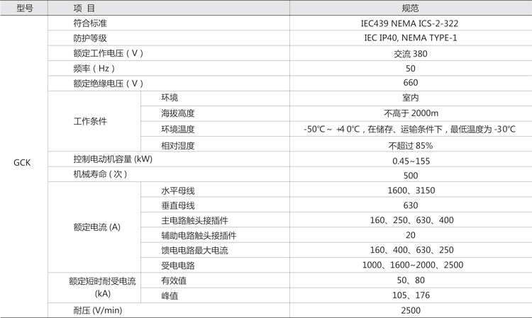 GCK低壓抽出式開關(guān)柜,主要是由一些組合式電動機控制單元,和其它功能單元組合而成。這些單元以上下重疊的方式安裝在封閉的金屬柜體內(nèi)。用設(shè)置在柜體上方的水平母線,將每個柜體聯(lián)結(jié)在一起,同一柜體的功能單元則并聯(lián)在垂直母線上。柜體共分水平母線區(qū)、垂直母線區(qū)、電纜區(qū)和設(shè)備安裝區(qū)等四個互相隔離區(qū)域,功能單元分別安裝在各自的小室內(nèi),當(dāng)任何一個功能單元發(fā)生事故時,均不影響其它單元,防止事故擴大。本產(chǎn)品符合JB/T9661-1999標(biāo)準(zhǔn)。該產(chǎn)品采用IEC114規(guī)定的IP40防護等級,當(dāng)所有的門和護板關(guān)閉時,或門開啟時以及功能單元外于移出位置時,均能達到相應(yīng)的防護等級,這樣可確保人身安全。該產(chǎn)品設(shè)置有完善可靠的接地系統(tǒng)和保護電路,所有功能單元均能按規(guī)定的性能要求,分?jǐn)喽搪冯娏鳎M線單元具有三段保護特性。因此,可以保證供電的可靠性,和設(shè)備與系統(tǒng)的安全。所有功能單元,均可通過接口件與PC線板(可編程序控制器)或微處理機連結(jié),作為自動控制系統(tǒng)的執(zhí)行單元,根據(jù)用戶需要還可以提供其它內(nèi)容的功能單元和功能組合,該產(chǎn)品適用于交流380V,頻率50Hz的電路中。