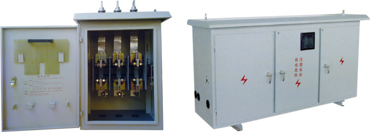 我公司開發(fā)試制了BWX-Z系列低壓柱上綜合配電箱。該裝置既能對柱上公變低壓側配電線路進行分配控制和保護,刀熔開關采用HR□系列隔離開關熔斷器組合電器,刀熔開關無需打開箱門操作,就能實現開關的分、合閘。本產品分為帶無功補償裝置和不帶無功補償裝置兩種型式。可實現電能計量、測量電流、電壓、功率因數等功能,對柱上公變的出線運行狀況進行實時監(jiān)測,為供電部門調查運行狀況,制定最經濟、安全的運行方案及設備的增容等提供一套 完整的數據,該裝置的開發(fā)成功,改變了原有產品懸掛式配電箱的多種不足,集多種功能于一體,安裝、操作、檢修方便,降低了電力工人的勞動強度,又整潔城鎮(zhèn)市容,有利于城鎮(zhèn)公變及農村配變的標準化、規(guī)范化管理。